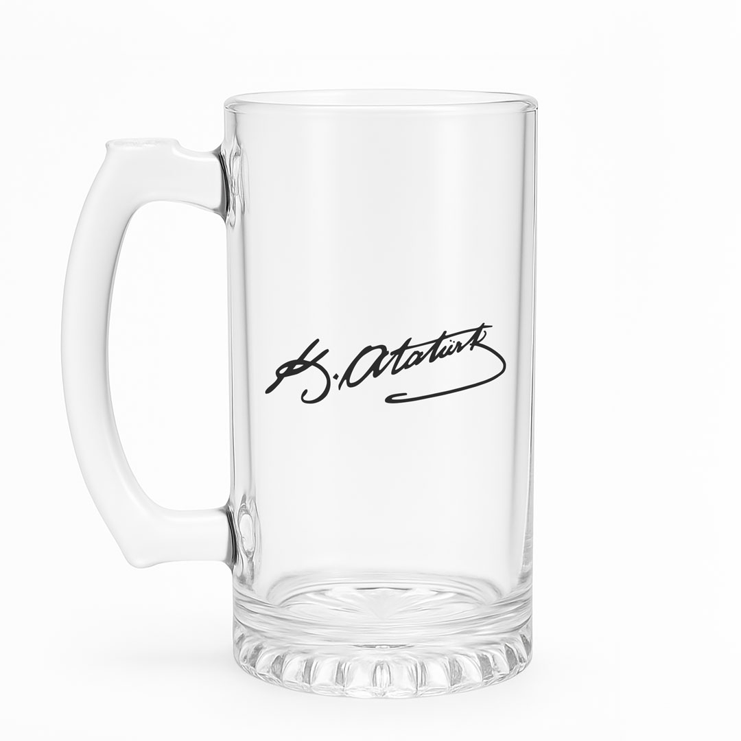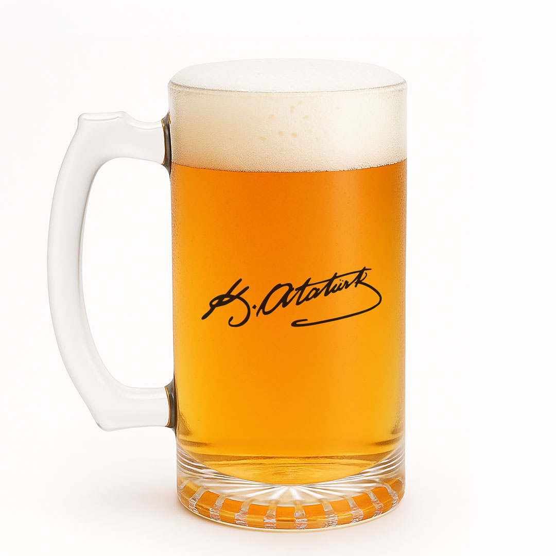 Mustafa Kemal Atatürk’ün imzasını taşıyan bu özel tasarım bira bardağı, hem estetik hem de anlam açısından öne çıkan bir koleksiyon ürünüdür.