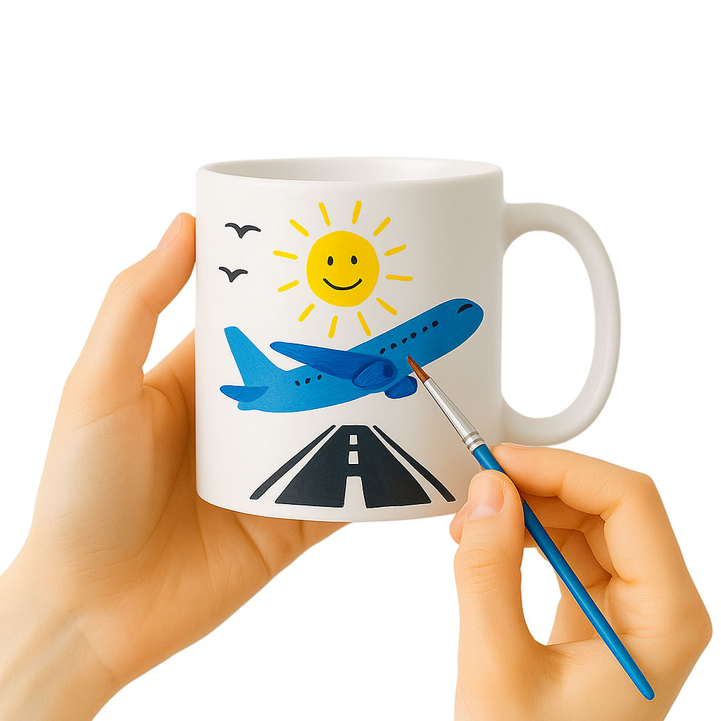 Kupa bardak üzerine, set içerisindeki fırça ve boyalarla dilediğiniz deseni uygulayın. Tasarımınızı tamamladıktan sonra kupanızı 130°C’de 15 dakika fırınlayarak sabitleyin. Alternatif olarak hava ile de kurutabilirsiniz (daha uzun sürede sabitlenir).