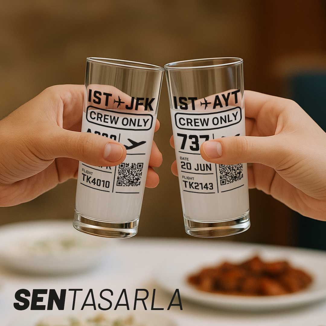 Kişiye Özel Havacılık Rakı Bardağı – Crew Only & Boarding Pass Tasarım
